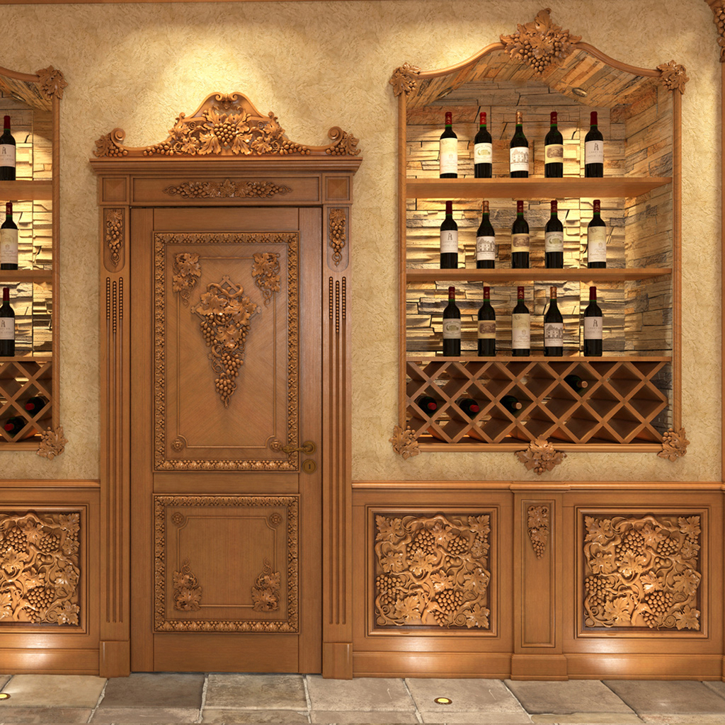 This openwork solid wood onlay is made in the fundamental Classic style. It has a square frame with a majestic grape composition. Such an exclusive design looks laconic and very elegant. This model is a wonderful decoration for living rooms, kitchens, wine cellars, restaurants or any other interior spaces.