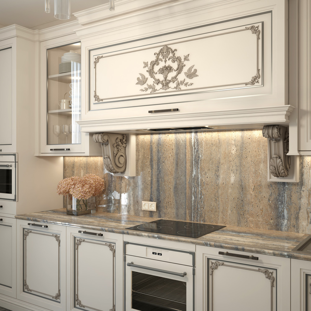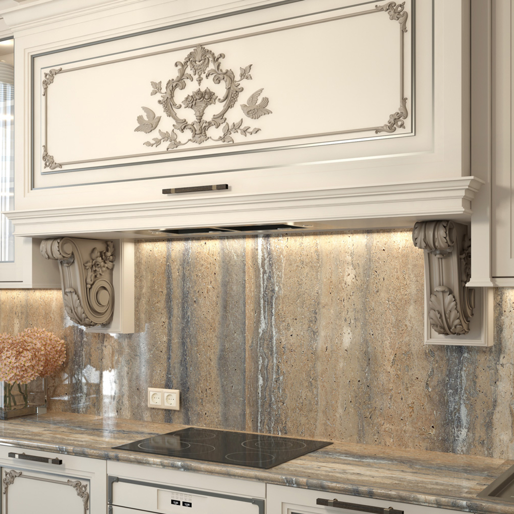 This ornate neoclassical corbel is a masterpiece of intricate design. Its central feature is the acanthus leaf delicately wrapping around it, evoking a sense of classical elegance and refinement. Additionally, acanthus flowers adorn its sides, further enhancing its opulent appearance. Each detail is meticulously crafted, showcasing the skilled artistry of the craftsman. The combination of the graceful acanthus motifs and the corbel's sculptural form creates a captivating visual impact, making it a stunning focal point in any architectural or interior design setting.